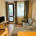 The 63 m^2 apartment includes a mini-kitchen equipped with a microwave, an electric kettle, and a refrigerator. The restaurant Sunny is a 7-minute walk away. Burgas airport is 48-minute drive away.